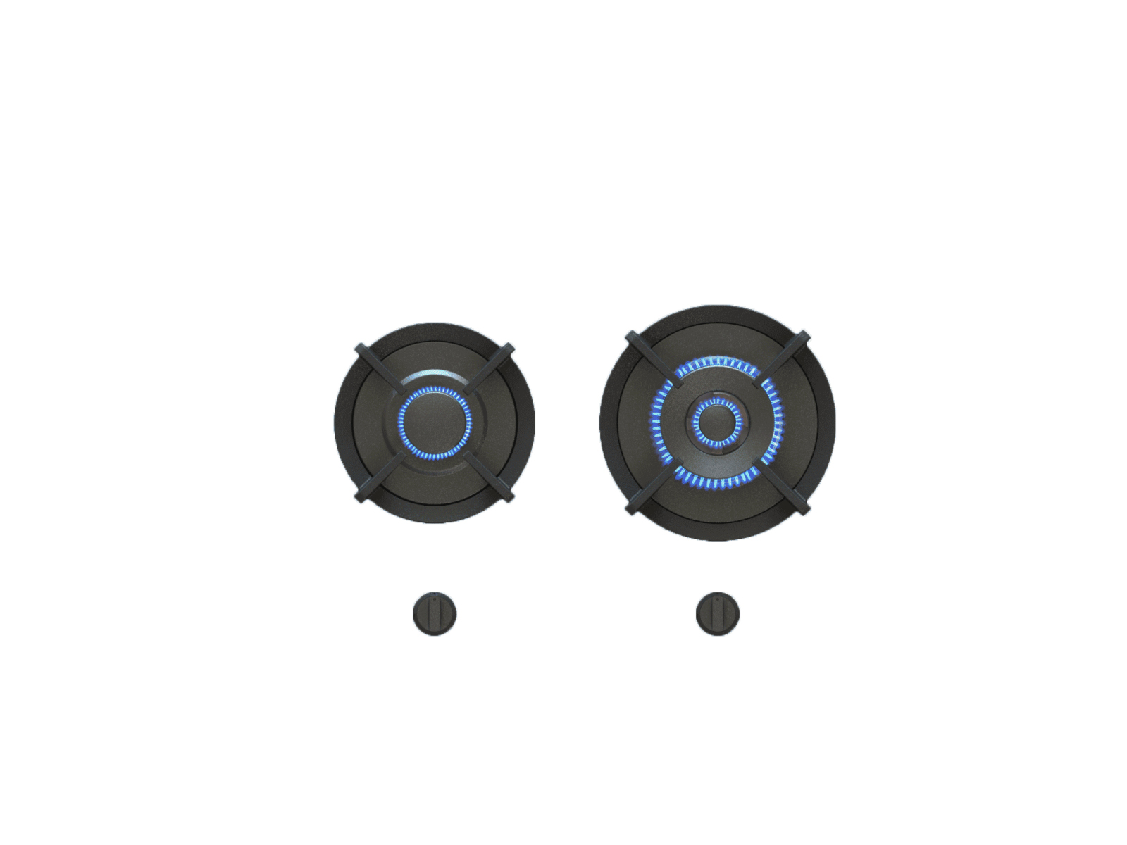 BELY kaasuliedessä on yksi Ø 270 mm poltin ja yksi Ø 230 mm poltin. Tilattavissa kaksi eri mallia: säätönupit työtason päällä tai säätönupit työtason etureunassa.