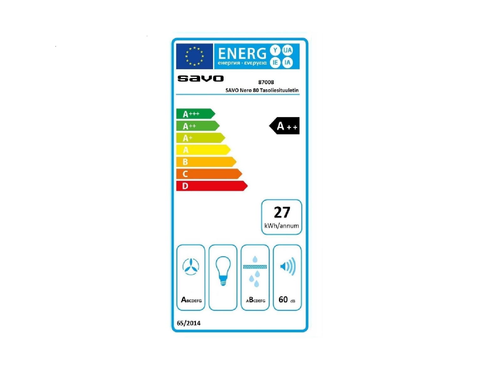 | 87008 Savo Nero 80 tasoliesituuletin | 2 768,53 € |